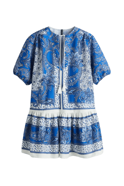 Este look exala a leveza e o frescor do verão, perfeito para dias ensolarados e momentos de lazer. O vestido estampado em tons de azul e branco, com seu caimento solto e detalhes charmosos, é a peça central que irradia um ar descontraído e elegante. Combinado com uma calça wide leg branca, o visual ganha um toque moderno e sofisticado, ideal para quem busca conforto sem abrir mão do estilo. As sandálias rasteiras brancas com fivelas douradas e a bolsa tote off-white complementam o conjunto, garantindo praticidade e um acabamento impecável para um passeio casual, um almoço ou uma tarde de compras.