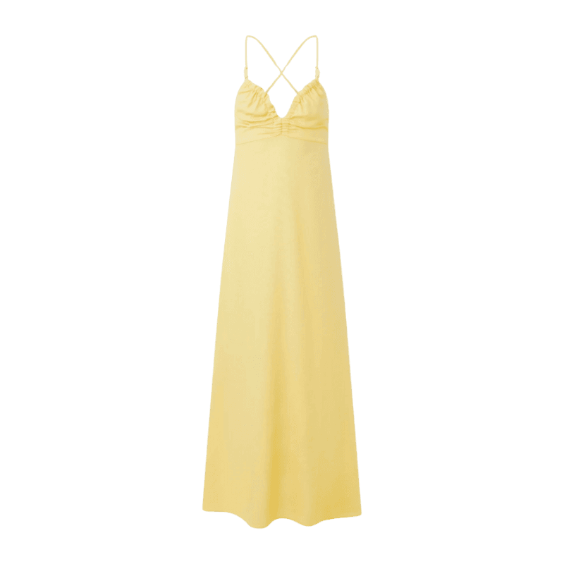 Deslumbre-se com a leveza e o charme deste look de verão, perfeito para dias ensolarados e momentos de lazer. O vestido midi amarelo claro, com suas alças finas e caimento fluido, é a peça central que irradia frescor e feminilidade. Acompanhando a delicadeza do vestido, os acessórios dourados – brincos florais, pulseira discreta e a corrente da bolsa de ombro – adicionam um toque de sofisticação e brilho. As sapatilhas trançadas em tom dourado/bege complementam o visual com conforto e estilo, tornando este look ideal para um brunch, um passeio no parque ou um happy hour descontraído. Uma combinação harmoniosa que celebra a estação com elegância e praticidade.