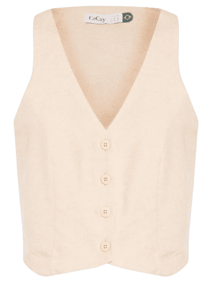 O colete de alfaiataria é super versátil! Para um look mais formal, use com calças de alfaiataria e scarpin. Para um toque casual, combine com jeans, saias midi ou shorts e tênis, como neste look.