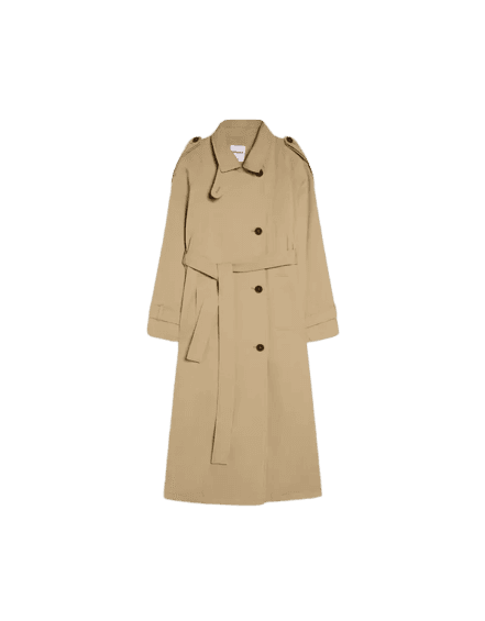 Para um toque mais casual durante o dia, você pode trocar a mule por um scarpin baixo ou sapatilha, e a bolsa por uma tote mais estruturada, mantendo o trench coat para um ar sofisticado.