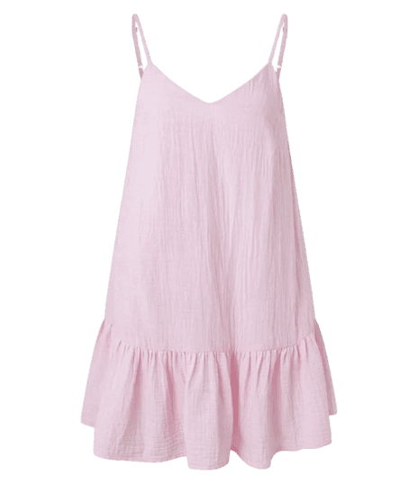 Desfrute do verão com este look leve e encantador, perfeito para dias ensolarados. O vestido rosa claro de alcinhas, com seu tecido texturizado e caimento fluido, oferece conforto e um toque romântico. Complementado por sandálias rasteiras douradas e uma elegante bolsa tiracolo off-white, o visual ganha um brilho sutil. Os óculos de sol aviador e os brincos de franjas adicionam um charme extra, criando um conjunto ideal para passeios, almoços casuais ou momentos de lazer com muito estilo e frescor.