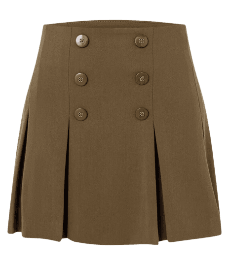 Este look feminino exala uma elegância descomplicada, perfeito para a mulher moderna que busca estilo e conforto. A blusa de manga longa com estampa paisley em tons terrosos e creme adiciona um toque sofisticado, enquanto a saia plissada verde militar com botões frontais confere um ar contemporâneo. Os sapatos anabela na cor vinho alongam a silhueta com discrição, e a mochila estampada em marrom é prática e chic. Finalizado com brincos dourados, este conjunto é ideal para transitar do trabalho casual a um happy hour, garantindo um visual polido e atual.