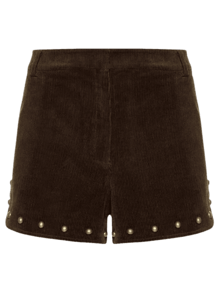 Este look exala uma elegância casual e descontraída, perfeito para quem busca conforto sem abrir mão do estilo. A blusa transparente em tom creme, com seu detalhe de laço e babados, adiciona um toque romântico e sofisticado. Combinada com shorts de veludo cotelê marrom, adornado com pequenos detalhes metálicos, cria um contraste interessante de texturas. O mocassim dourado traz um brilho inesperado e moderno, enquanto a bolsa hobo de camurça marrom e os óculos de sol completam o visual com praticidade e charme. Um conjunto versátil para diversas ocasiões diurnas e de happy hour.