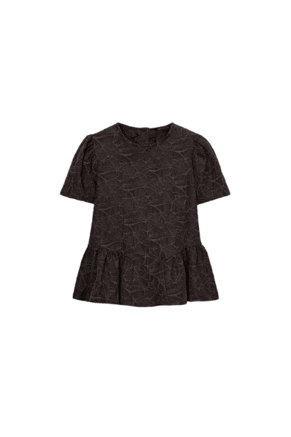 Este look incorpora a tendência do peplum, o clássico xadrez em uma modelagem moderna (jogger), o atemporal animal print nos calçados e a sofisticação das pérolas, criando uma combinação equilibrada de clássico e contemporâneo.