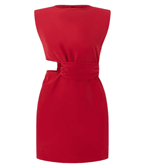 Este look exala confiança e sofisticação, perfeito para quem busca um visual marcante e elegante. O vestido vermelho vibrante, com seus recortes laterais estrategicamente posicionados, adiciona um toque de ousadia e modernidade sem perder a classe. A silhueta ajustada valoriza a forma, enquanto o comprimento midi confere versatilidade. Os acessórios dourados, como o colar de elos robustos, o relógio clássico e os brincos argola, elevam o brilho e a riqueza do conjunto. A mule e a bolsa em tom bordô complementam a paleta de cores com uma elegância discreta, criando um contraste harmonioso e refinado. Ideal para jantares especiais, coquetéis ou eventos noturnos que pedem um toque de glamour.