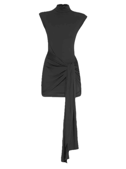 Este look exala sofisticação e modernidade, ideal para quem busca um visual impactante para a noite. O vestido preto mini, com sua gola alta e detalhe de nó lateral que cria um drapeado elegante, é a peça central. Complementado por um scarpin clássico de salto alto e uma bolsa matelassê com alça de corrente, o conjunto é finalizado com um colar minimalista, adicionando um toque de brilho discreto. Perfeito para jantares, festas ou eventos sociais, este look garante elegância e confiança em qualquer ocasião noturna.