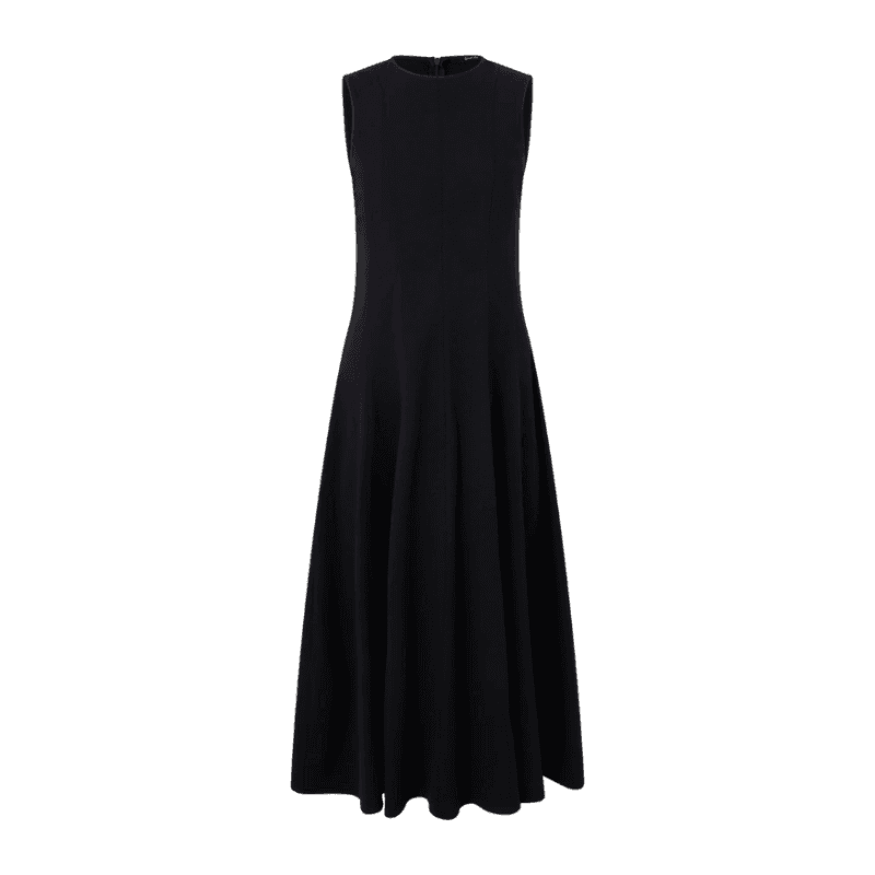 Este look exala uma elegância atemporal, centrado em um vestido midi preto de corte impecável, que serve como base perfeita para diversas ocasiões. A combinação com o scarpin slingback creme adiciona um toque de leveza e sofisticação, enquanto a bolsa de mão de poá injeta um charme clássico e divertido. Os óculos de sol retangulares e os acessórios bicolores em preto e dourado arrematam a produção com um ar moderno e refinado. Ideal para a mulher que busca versatilidade e estilo, transitando com facilidade do ambiente de trabalho a um jantar especial.
