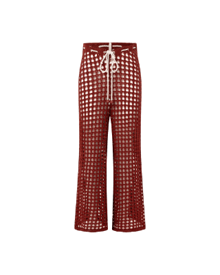 Desfrute do verão com este look de praia que combina conforto e sofisticação. O biquíni em tom mostarda vibrante é a base perfeita para a calça de crochê vazada na cor terracota, que adiciona um toque artesanal e elegante. Complementando o visual, um chapéu de palha de aba larga oferece proteção solar com muito estilo, enquanto os óculos de sol tartaruga e os brincos dourados trazem um charme extra. A bolsa de palha espaçosa e os chinelos confortáveis finalizam o conjunto, ideal para um dia relaxante na praia, um passeio à beira da piscina ou um almoço em um resort.