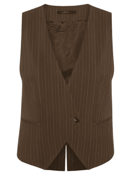 Este look de alfaiataria exala sofisticação e modernidade, ideal para a mulher contemporânea. Composto por um elegante colete e uma calça pantalona listrada em tons de marrom, ele oferece um caimento impecável e um toque de estilo clássico. A camisa social branca, de corte clean, complementa a base, criando um contraste harmonioso. Os acessórios, como o scarpin slingback marrom, a bolsa matelassê branca com detalhes dourados e os brincos geométricos, elevam a produção. Perfeito para o ambiente de trabalho, reuniões importantes ou um happy hour elegante, este conjunto transita com facilidade entre o dia e a noite, garantindo um visual polido e cheio de personalidade.