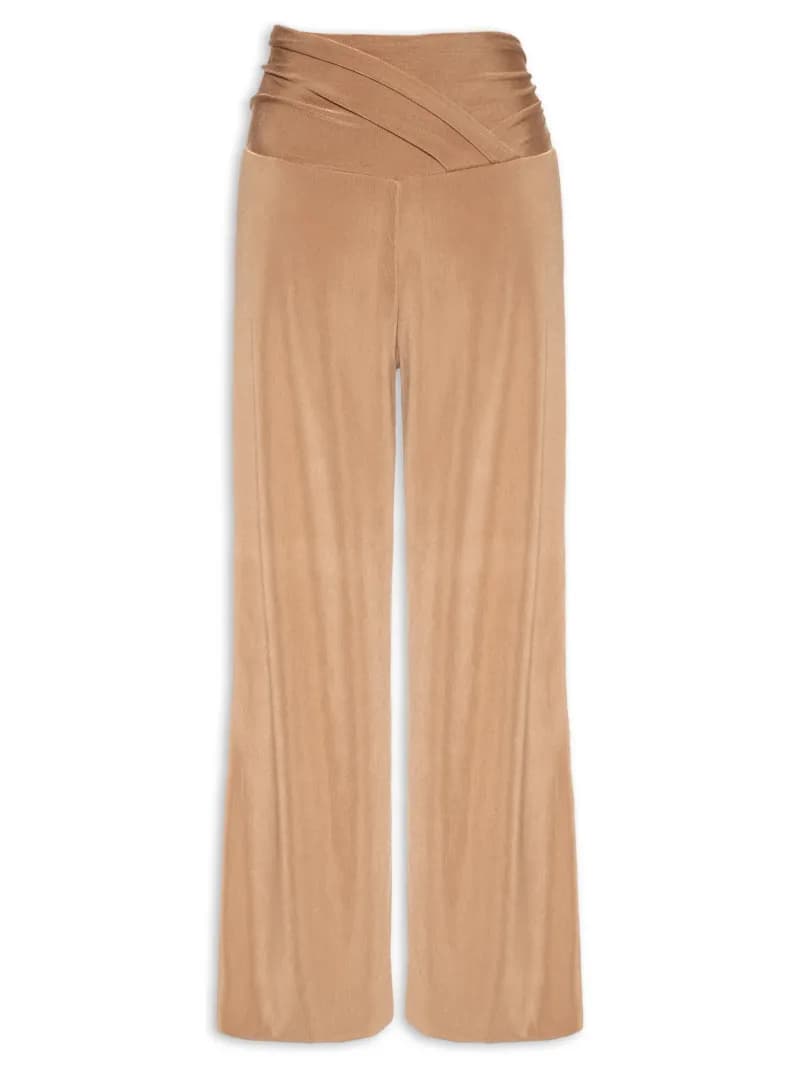 A calça pantalona oferece conforto e fluidez, além de alongar a silhueta. Ela confere um toque de elegância e modernidade, sendo versátil para diversas ocasiões.