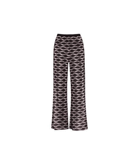 Este look exala uma sofisticação descontraída, ideal para os dias quentes de verão. Combinando um biquíni preto de cintura alta com uma calça pantalona de estampa ondulada em tons neutros, ele oferece conforto e estilo. O blazer preto leve adiciona um toque de elegância e versatilidade, permitindo transitar facilmente de um almoço à beira-mar para um happy hour. Acessórios dourados, como o colar longo, anel e brincos, complementam o conjunto, enquanto a sandália rasteira preta garante praticidade e charme. Uma escolha perfeita para quem busca um visual chic e funcional em viagens ou no dia a dia de verão.