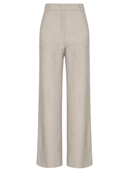 Para o dia, a combinação de cores claras da calça com o top preto é perfeita. Para a noite, os acessórios em preto e o brilho do sapato e da bolsa elevam o visual, tornando-o ideal para eventos noturnos.
