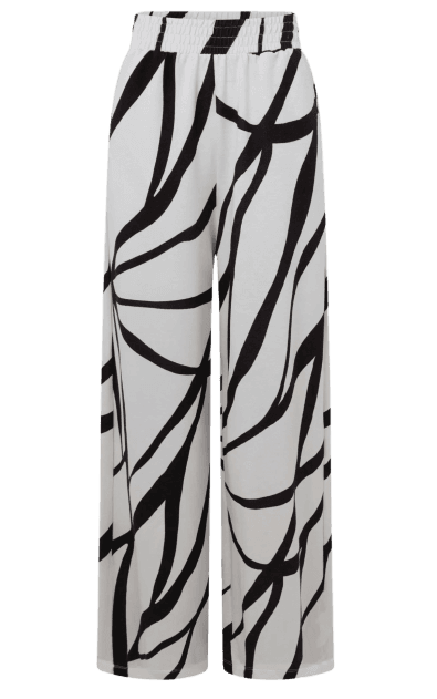Este look exala sofisticação e versatilidade, perfeito para a mulher moderna que transita entre compromissos profissionais e sociais com elegância. A combinação do blazer azul marinho com o colete de tricô off-white cria uma sobreposição interessante e chic, enquanto a calça pantalona com estampa abstrata em preto e branco adiciona um toque de personalidade e fluidez. Os scarpins slingback pretos e a bolsa matelassê com detalhes dourados elevam o conjunto, conferindo um ar polido e contemporâneo. Os acessórios delicados finalizam a produção, tornando-a ideal para o dia a dia no escritório, um almoço de negócios ou um happy hour descontraído.