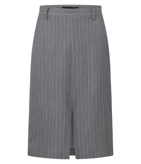 Este look exala uma elegância casual chic, ideal para a mulher moderna que busca versatilidade e estilo. A saia lápis cinza em risca de giz, com sua fenda discreta, combina perfeitamente com a regata preta de malha canelada, criando uma silhueta sofisticada. Os acessórios dourados – brincos geométricos, relógio e fivela do cinto marrom – adicionam pontos de luz e refinamento. A bolsa de ombro preta e o scarpin slingback off-white completam a produção, tornando-a perfeita para o ambiente de trabalho, reuniões ou um happy hour descontraído.