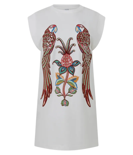 Um look feminino que combina o despojado e o sofisticado. A camiseta branca com estampa colorida é o destaque, combinada com tênis azul claro que dá toque esportivo. A bolsa verde traz contraste moderno, enquanto o colar comprido completa com um ar elegante. Ideal para saídas leves e casuais.