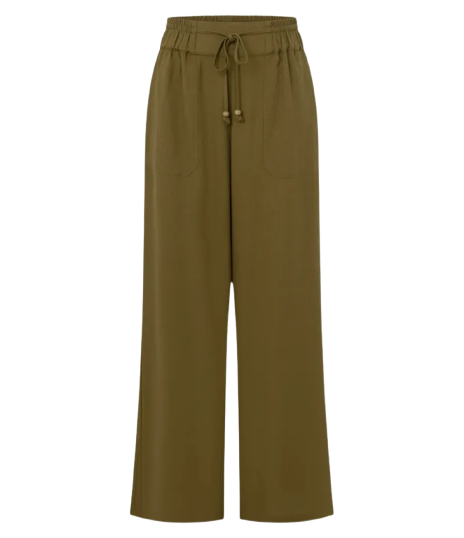Este look casual é perfeito para o dia a dia. A camiseta branca estampada confere um toque moderno, combinada com calça verde oliva de tecido leve. Os tênis brancos adicionam conforto e estilo urbano. A bolsa off-white, somada ao colar dourado, dá um charme sofisticado ao conjunto.