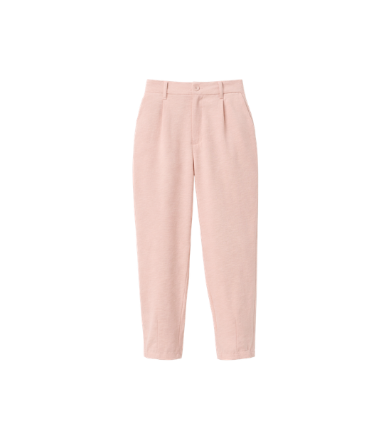 Um look casual e feminino ideal para o ambiente de trabalho. A parte superior conta com uma polo marrom combinada com calças tapered rosa. O visual é complementado por tênis bicolores e acessórios discretos, como brincos de flor e cinto marrom, além de uma bolsa de ombro marrom que traz praticidade e estilo.