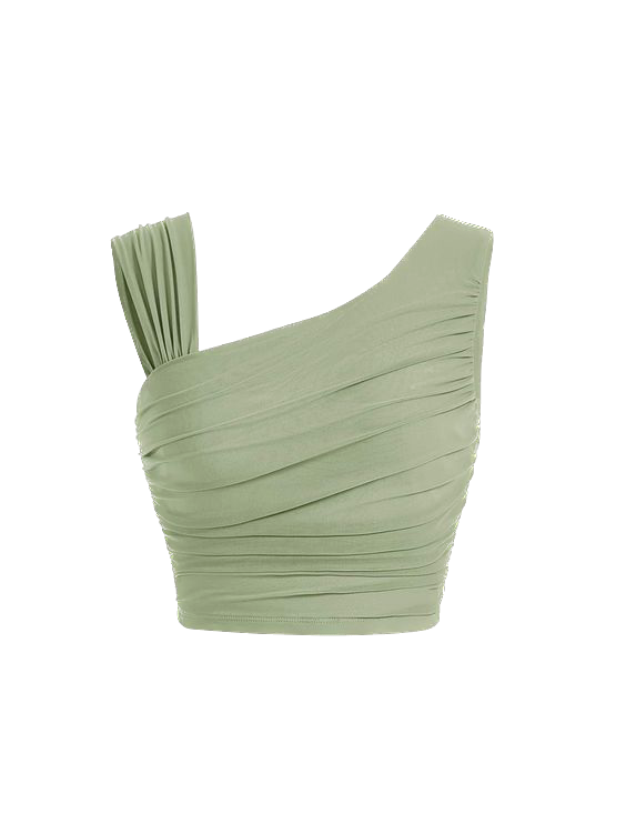 Este look feminino oferece uma combinação de elegância atemporal com um toque contemporâneo. A parte superior apresenta um top de um ombro só em verde suave, drapeado, que traz fluidez e sofisticação. A parte inferior é composta por calças pantalonas em tom off-white, com corte reto que alonga a silhueta e promove um caimento impecável. Complementando o visual, sandálias de salto em couro branco com tiras delicadas adicionam um charme refinado. Para acessórios, uma bolsa estruturada verde escura confere contraste rico e modernidade, enquanto brincos de pérola pendentes completam o look com delicadeza. Ideal para quem deseja unir classe e modernidade de forma harmônica.