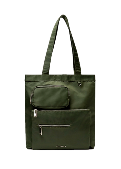 Este look feminino equilibra estilo e funcionalidade com maestria. Na parte superior, um bustier preto estruturado confere elegância ousada, contrastando harmoniosamente com a jaqueta cropped branca de linhas clássicas, realçando a modernidade do visual. A parte inferior apresenta uma calça cargo bege, que traz um toque utilitário e versatilidade ao conjunto. Nos pés, boots pretos robustos em couro acrescentam um mood urbano e contemporâneo. Acessórios são fundamentais: um cinto preto sofisticado, brincos de metal polido e uma bolsa tote verde oliva que alia praticidade e sofisticação. Ideal para uma mulher que aprecia a fusão entre o clássico e o moderno, sem abrir mão da funcionalidade e estilo.