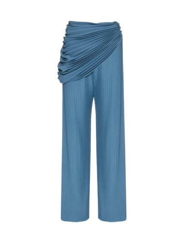 Este look feminino combina elegância com um toque moderno casual. A parte superior incorpora uma camiseta branca de corte clássico, oferecendo simplicidade e versatilidade. Na parte inferior, uma calça azul com drapeado lateral realça a silhueta e traz um elemento de sofisticação ao conjunto. Nos pés, mocassins verdes de camurça adicionam um toque de textura e conforto ao visual. Como acessórios, os óculos de sol com armação preta emprestam um charme atemporal, enquanto os brincos prateados com pedras azuis e a pulseira prateada trazem um brilho discreto. A bolsa marrom em couro, de design estruturado, completa o look com uma tonalidade terrosa, ideal para mulheres que buscam praticidade sem abrir mão da elegância.