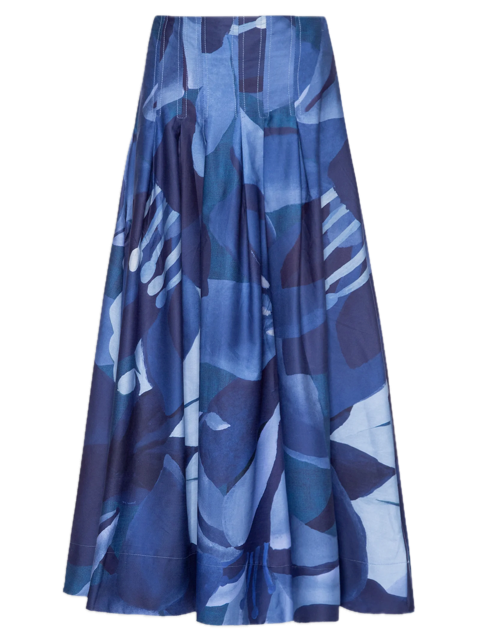 Este look feminino captura a essência da elegância contemporânea. A parte superior é destacada por um cropped vermelho vibrante, trazendo dinamismo e vivacidade. Para a parte inferior, uma saia longa e fluida com estampa abstrata em tons de azul, complementando o visual com um toque de sofisticação artística. Nos pés, sandálias nude de salto, que elevam o design com graça e modernidade. Acessórios dourados, incluindo brincos e colar, adicionam brilho sutil, enquanto a bolsa estruturada branca traz um contraste refinado, perfeita para iluminar qualquer ocasião ensolarada. Um par de óculos de sol completam o conjunto, garantindo proteção com estilo icônico.