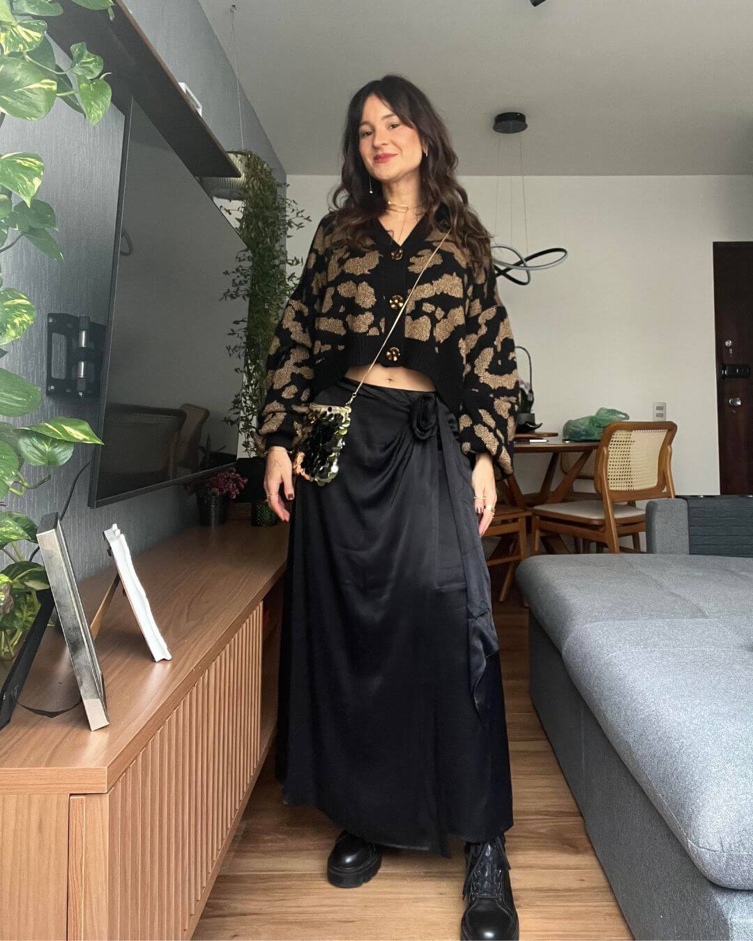 O mix entre o estilo esportivo e peças mais sofisticadas eleva o look a outro patamar, unindo conforto e elegância. O coque complementa perfeitamente essa proposta moderna, assim como os ear cuffs, que finalizam a produção com um toque de ousadia e estilo. Tênis e bolsa, em harmonia complementar, acrescentam intensidade e reforçam a personalidade do look.