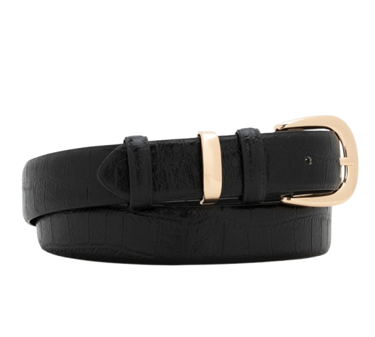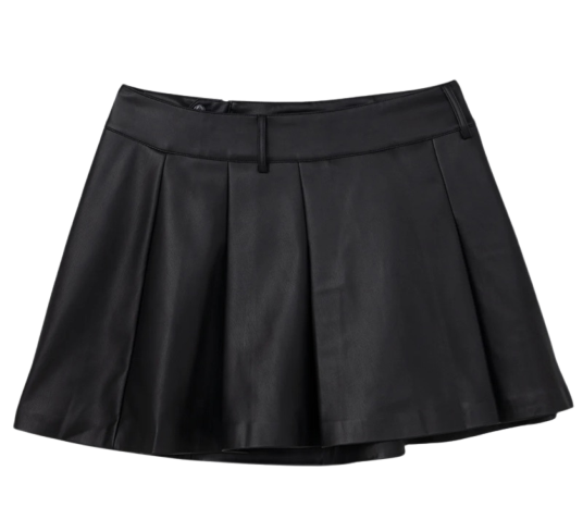 Um look feminino moderno ideal para ocasiões casuais. A jaqueta preta complementa a saia de couro, criando uma estética elegante. O mocassim preto adiciona conforto e estilo, enquanto a bolsa marrom traz um toque de sofisticação. O cinto preto finaliza o visual com charme extra.
