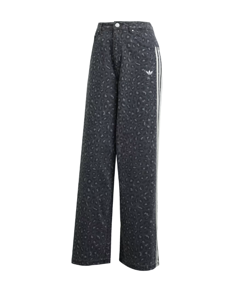 Este look feminino combina ousadia e estilo com harmonia. A parte superior é marcada por uma blusa cropped marrom da Adidas, que oferece um toque contemporâneo com seu tecido texturizado e logotipo discreto. A parte inferior apresenta uma calça wide leg preta, com estampa de animal print sutil e detalhes de listras nas laterais, trazendo um visual urbano e sofisticado. Nos pés, tênis em tons de rosa e verde da Adidas injetam uma energia vibrante e jovial. Acessórios incluem uma bolsa prata com textura em relevo do logotipo, complementando com modernidade, e brincos brancos que dão um toque de elegância. Este conjunto é perfeito para mulheres que buscam um equilíbrio entre conforto e tendências.