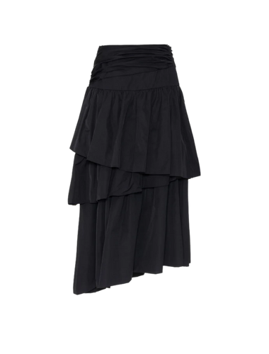 Este look feminino resplandece elegância casual com uma sofisticação atemporal. A parte superior é composta por uma camiseta branca básica, de corte reto e tecido leve, ideal para um visual descomplicado. A saia longa preta, com camadas assimétricas, oferece movimento e fluidez, acentuando o estilo boêmio contemporâneo. Nos acessórios, o destaque fica por conta da bolsa de ombro em couro marrom, conferindo um toque clássico e elegante. O conjunto é aprimorado por brincos dourados circulares, braceletes e um relógio, que adicionam brilho e refinamento. Óculos de sol completam a composição, garantindo um ar misterioso e sofisticado. Este visual é perfeito para mulheres que buscam uma combinação de conforto e estilo, ideal para um dia de verão urbano.