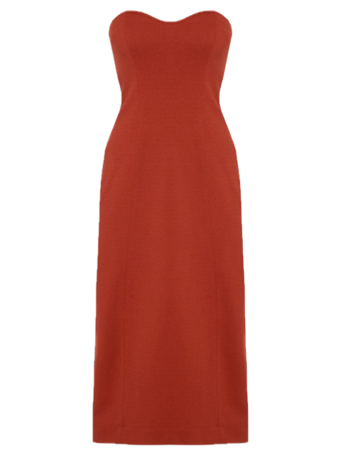 Este look feminino é a personificação da elegância contemporânea. A peça única central é um deslumbrante vestido longo tomara que caia em vermelho terra, que esbanja sofisticação e modernidade. Como sublime complemento, os acessórios dourados destacam-se: um colar delicado e brincos pendentes que elevam o glamour do visual. Acessórios essenciais vêm na forma de uma carteira texturizada rosa, garantindo um toque de suavidade. Para dias mais frescos, uma echarpe xadrez em nude adiciona conforto e estilo. Completando o conjunto, sapatos de salto médio em rosa pastel reforçam a paleta suave e coesa, ideal para eventos que clamam por distinção e charme.