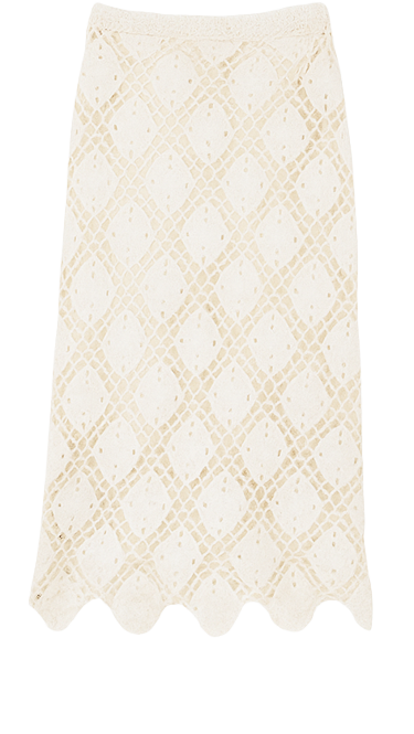 Este look feminino irradia elegância boêmia e charme artesanal. A parte superior apresenta uma blusa branca com mangas bufantes, conferindo um ar romântico e fluído. A combinação com a saia midi em crochê bege, de padronagem geométrica, realça a habilidade artesanal com um toque refinado. Nos pés, sandálias de dedo com estampa xadrez marrom oferecem conforto e um estilo casual. O acessório de cabelo em crochê rosa adiciona um toque delicado e vintage. A bolsa de palha, trançada à mão, complementa o conjunto com autenticidade rústica, enquanto o colar longo de pingente dourado e a pulseira minimalista dourada oferecem sofisticação sutil. Ideal para um dia ensolarado, este visual mistura leveza e tradição com uma sofisticação descontraída.