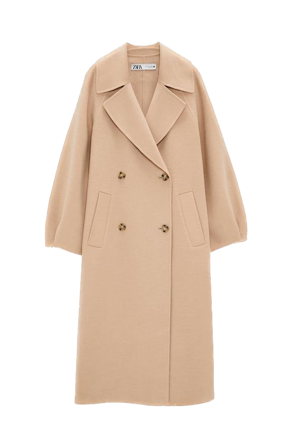 Sobretudo aberto e se preferir, dobrar levemente a manga para aparecer a manga do vestido.
