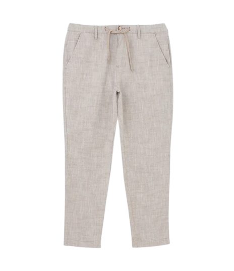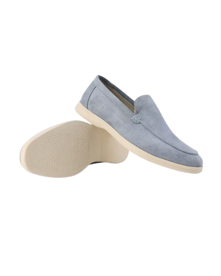 Este look masculino combina elementos clássicos e contemporâneos com maestria. A parte superior apresenta uma camisa social de listras azuis e brancas, em tecido leve que transmite frescor e elegância. A parte inferior destaca-se por uma calça de linho bege, oferecendo um corte reto que harmoniza sofisticação e conforto. Para os pés, mocassins azuis em camurça trazem um toque casual e refinado. Acessórios estrategicamente escolhidos elevam o visual: um relógio de pulso em aço inoxidável, pulseira de couro trançado preta, e um anel prateado minimalista. Ideal para ocasiões semi-formais, este conjunto é perfeito para o homem moderno que busca estilo e praticidade.