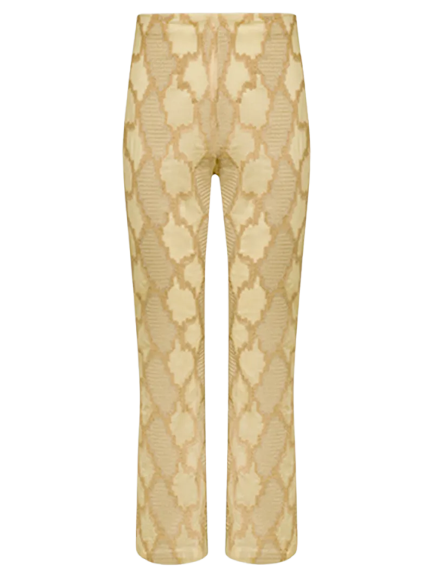 Look feminino elegante com blazer bege em alfaiataria, top branco minimalista e calça estampada de cobra em tons neutros. Os mocassins marrons conferem sofisticação, combinando com a bolsa de mão trançada. O look é completado por brincos discretos, ideal para momentos casuais com um toque refinado.