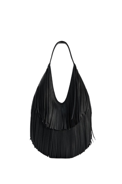 Este look feminino une modernidade e elegância casual. A parte superior é um top preto canelado, destacando a silhueta com um toque sofisticado. A parte inferior é um shorts de alfaiataria preto com poás brancos, conferindo um contraste clássico e despojado. Camadas adicionais vêm com o casaco branco oversized, ideal para equilibrar o visual com sofisticação. Nos pés, loafers pretos de couro realçam um estilo clássico. A bolsa de franjas preto complementa com textura e movimento. Para finalizar, brincos vermelhos em forma de flor e um colar prateado adicionam um toque de cor e brilho, aperfeiçoando o conjunto. Ideal para um dia urbano cheio de estilo e charme.