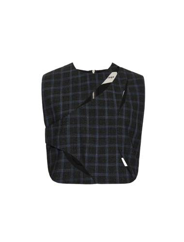 Este look feminino destila uma estética contemporânea e sofisticada. A parte superior é marcada por um elegante top xadrez preto e azul marinho, confeccionado em tecido leve, apresentando um recorte moderno que adiciona um toque de inovação. Na parte inferior, uma calça pantalona preta alonga a silhueta, favorecendo o conforto com seu corte fluido e tecido nobre. Os pés são adornados por sandálias prateadas metalizadas, proporcionando um brilho arrojado ao visual. Como complemento, uma bolsa preta de ombro com correntes douradas, aliando funcionalidade e luxo. Finalizando com brincos prateados, este conjunto é ideal para mulheres que buscam aliar estilo e versatilidade em seu dia a dia.