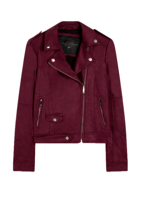 Este look feminino combina uma estética urbana e elegante. A parte superior destaca uma jaqueta biker vinho em tecido aveludado, com detalhes em zíper metálico e botões que acentuam um estilo rebelde sofisticado. Sob a jaqueta, uma blusa de alças finas com estampa artística multicolorida, adicionando um toque de arte moderna. A parte inferior apresenta uma saia midi preta em jeans, que traz uma silhueta alongada e minimalista. O conjunto é complementado por botas robustas de couro preto, conferindo um ar ousado e duradouro. Para finalizar, uma bolsa preta em verniz, com alça de corrente metálica, oferece um brilho sutil e moderno. Este look é ideal para quem busca um visual assertivo e estiloso, perfeito para incursões urbanas.