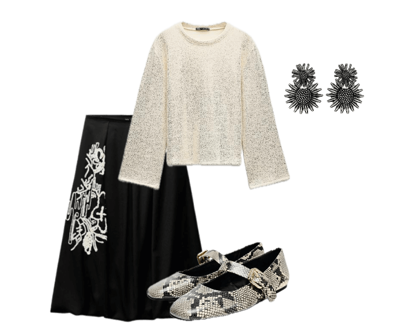 Um look teatral e cheio de atitude, ideal para um show, festival, happy hour, date ou aquela festa com os amigos. O vestido preto longo com transparência na parte inferior cria um efeito dramático e ao mesmo tempo sofisticado, revelando com sutileza e movimento. A bota western entra com força e personalidade, quebrando o óbvio e trazendo uma pegada urbana e ousada à produção. Os acessórios em prata reforçam o estilo marcante e moderno, com brilho frio e imponente. Uma proposta perfeita para quem quer ser lembrada, ocupando espaço com presença e originalidade. Arrase ainda mais com um batom vermelho.